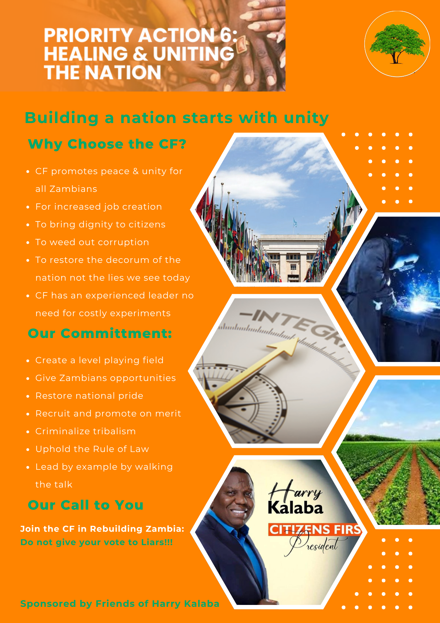 By working together we will achieve more than any single person could ever do alone. Your Vote will make a difference in restoring peace and human dignity in Zambia.