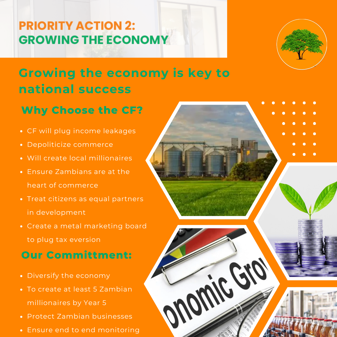 Zambia’s economic slowdown stems from missed opportunities, not limited resources. The CF proposes to reignite growth through stronger infrastructure, increased trade and investment, support for competitive sectors, expanded value-added exports, and technology-driven industrialisation — with the goal of transforming Zambia into a resilient, export-led economy.